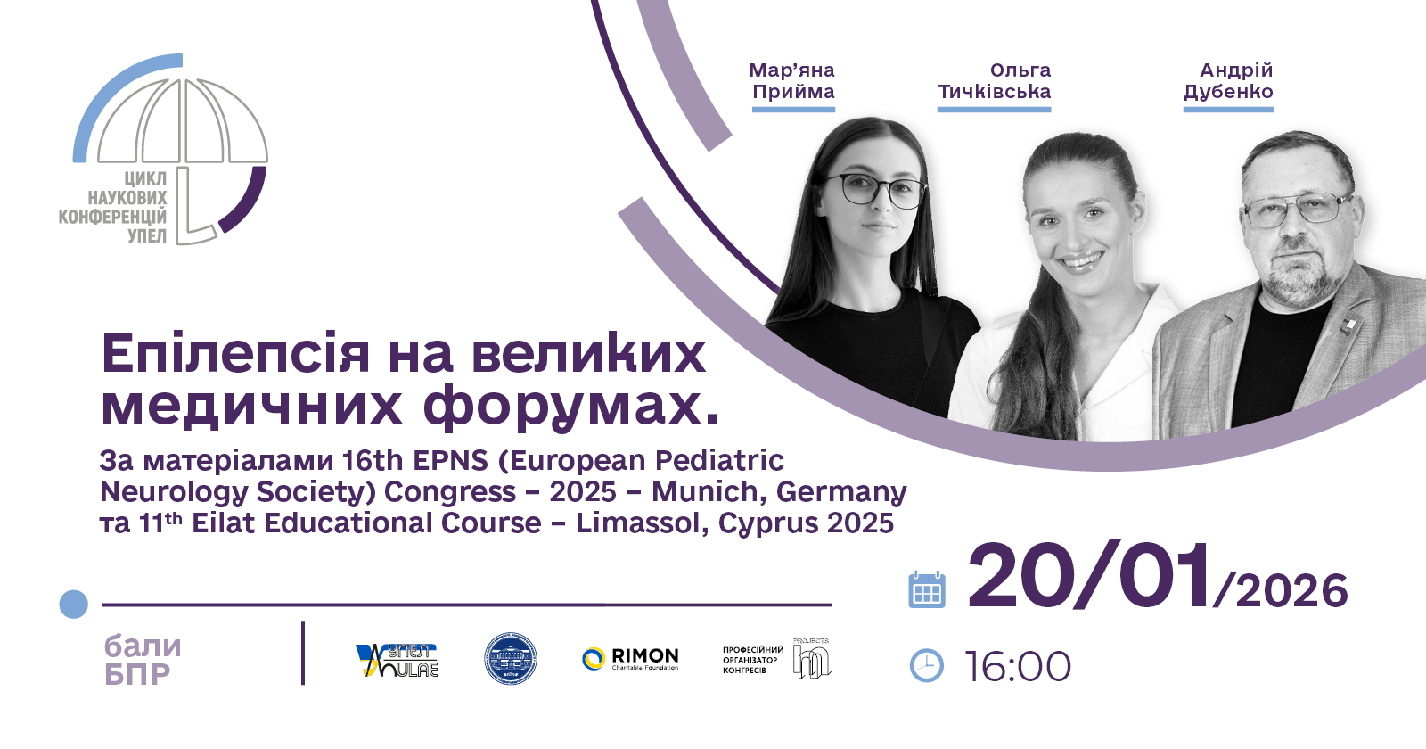 20.01.2026 – Епілепсія на великих медичних форумах. За матеріалами 16th EPNS (European Pediatric Neurology Society) Congress – 2025 – Munich, Germany та 11th Eilat Educational Course  Limassol, Cyprus 2025